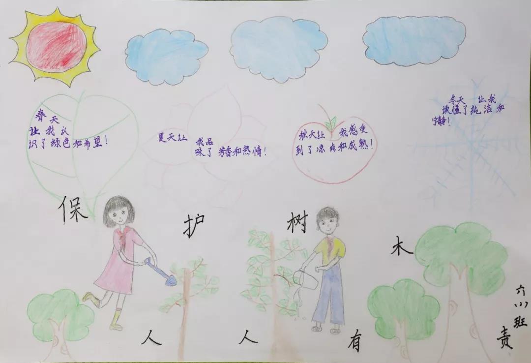 每一张手抄报皆是全班同学智慧的结晶,他们以植树节活动为切入点,把“植树、护树、爱绿”的生态文明观念融入在每一幅画与字里行间之中。